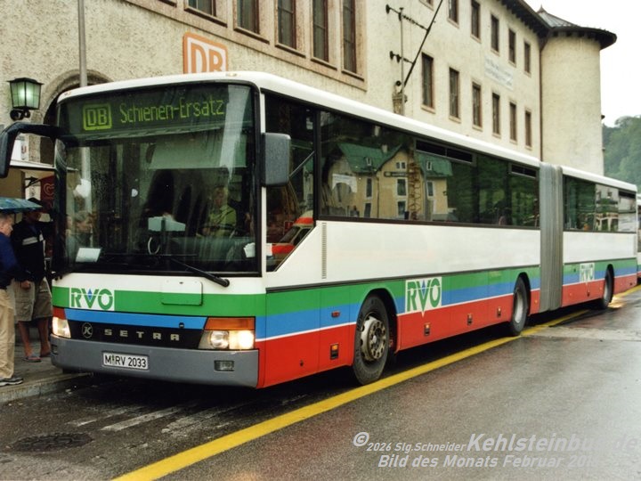 Immer wieder kommen in Berchtesgaden auch Gelenkzüge, hier allerdings nicht im Liniendienst, sondern im SEV (Schienenersatzverkehr) zum Einsatz. Dieser schöne, 1998 gebaute, Setra SG 321 UL war in Traunstein beheimatet und steht hier direkt vor dem Hauptbahnhof.