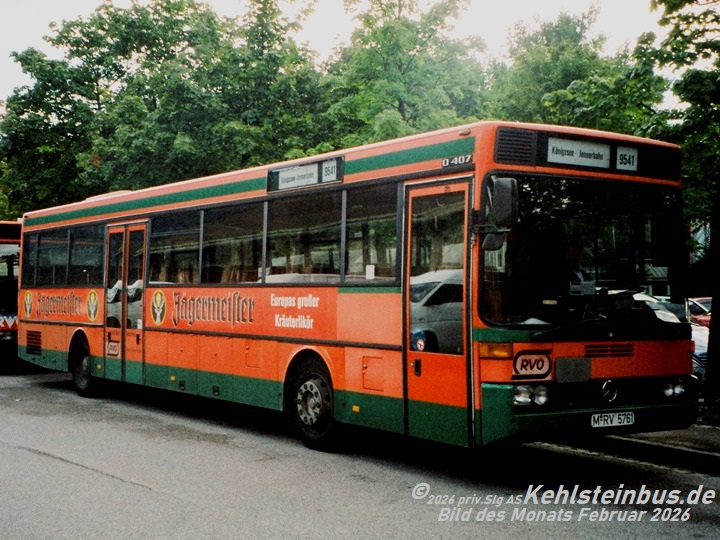 So genau kann man es nicht sagen, aber der 5761 lief wohl für den Betrieb Berchtesgaden. Es gibt nicht viele Infos zu dem Mercedes O 407, doch das Zielschild weist eindeutig auf einen Einsatz auf der Linie 841 (9541) hin. Der Wagen wurde 1989 in Dienst gestellt und das Bild ist im Jahr 2000 entstanden. Offiziell hat Berchtesgaden keine O 407 in dieser Lackierung gehabt, die ersten Wagen dieser Baureihe kamen dort erst ab 1990 zum Einsatz. Diese Wagen waren aber bereits im damals neuen RVO Design lackiert, also mit weißer Werbefläche und unterhalb dieser den breiten Streifen in grün/blau/orange.