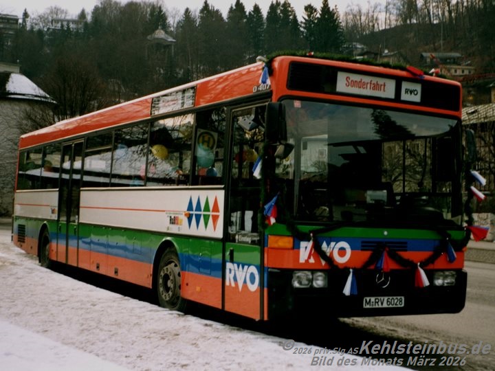 Unser Bild des Monats zeigt einen festlich geschmückten 1990 zugelassenen Mercedes O 407 aus Berchtesgaden. Der Wagen hat natürlich nichts mit dem Jubiläum zu tun, das Bild passt nur sehr gut dazu.